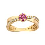 Anel de ouro 18k 750 com zircônia vermelhas e incolor