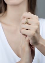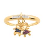 Anel de ouro 18k 750 com zircônias azuis e vermelhas