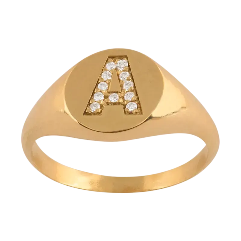 JOIASLANÇAMENTOANÉISAnel Letra A com Diamantes Ouro 18k 750