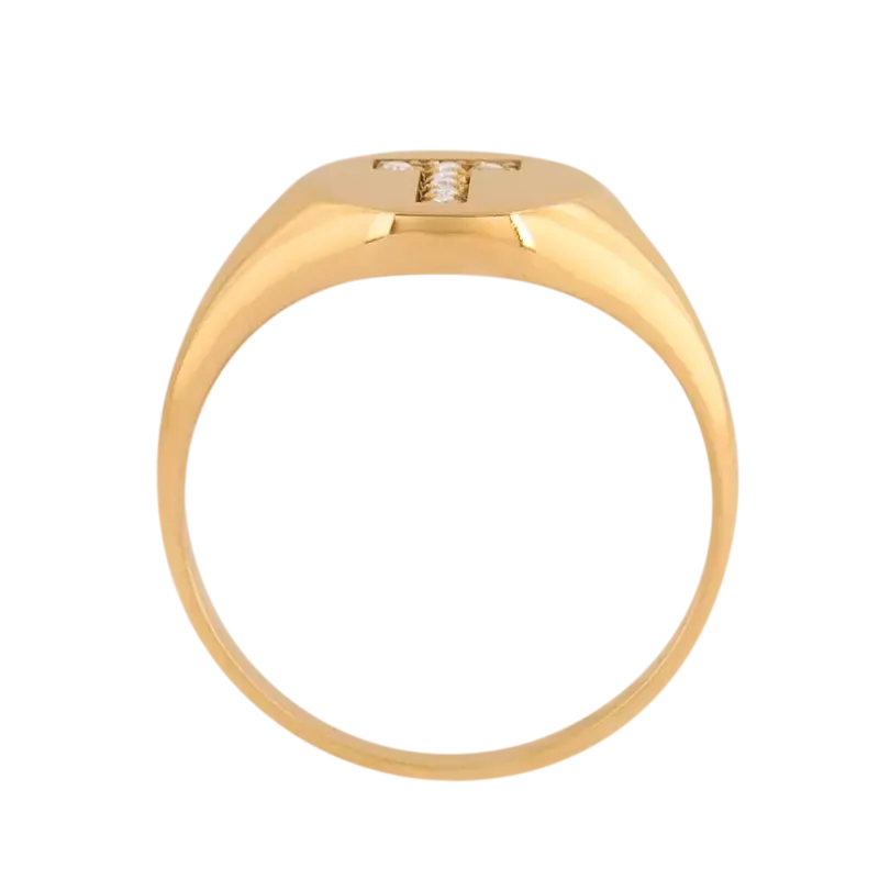 JOIASLANÇAMENTOANÉISAnel Letra T com Diamantes Ouro 18k 750