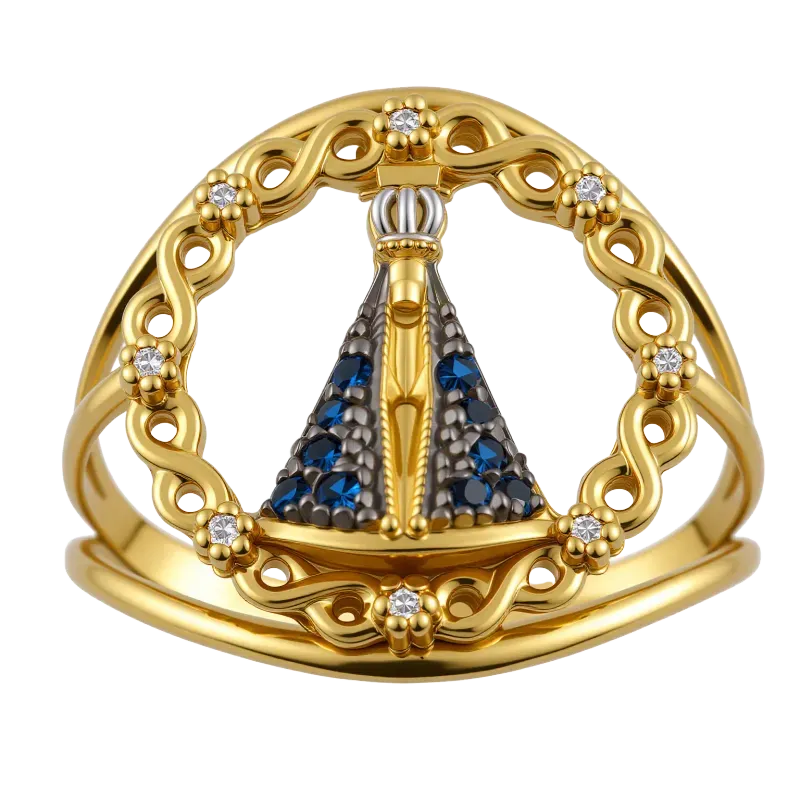 Anel de ouro 18k 750 com zircônias azuis e incolores