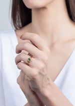 Anel Oval Esmeralda e Diamantes Ouro 18k 750