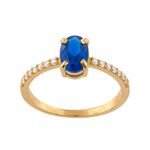 Anel Oval Zircônia Azul e Incolor Ouro 18k 750