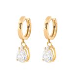 Brinco Argola Zircônia Gota Incolor Ouro 18k 750