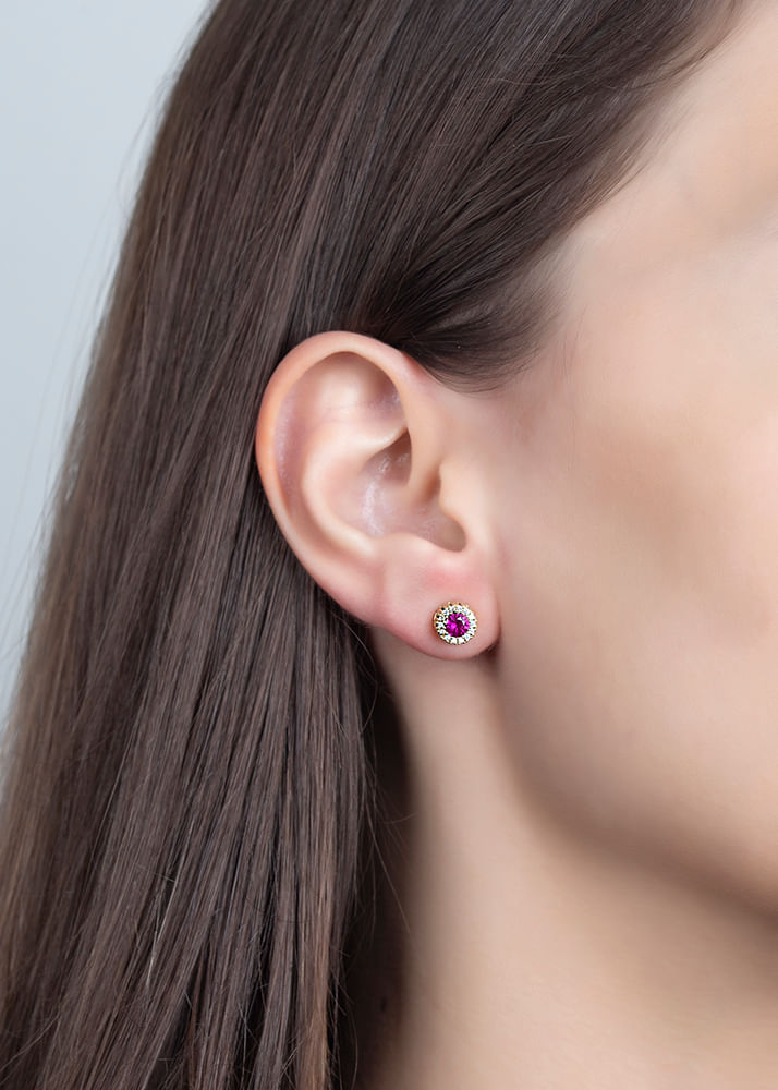 Brinco de ouro 18k 750 com zircônias vermelhas e incolor