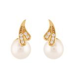 Brinco de ouro 18k 750 com pérolas e diamantes