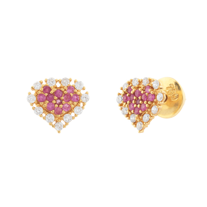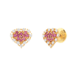 Brinco Coração Com Rubi e Diamante Ouro 18k 750