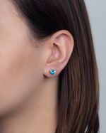 Brinco Coração Zircônia Azul-Clara Ouro 18k 750
