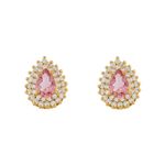 Brinco de ouro 18k 750 com turmalinas rosa e diamantes