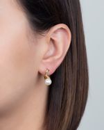 Brinco de ouro 18k 750 com pérolas e diamantes