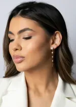 Brinco Pendente 8 Pérolas Ouro 18k 750