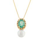 Gargantilha de ouro 18k 750 com apatita, pérola e diamantes
