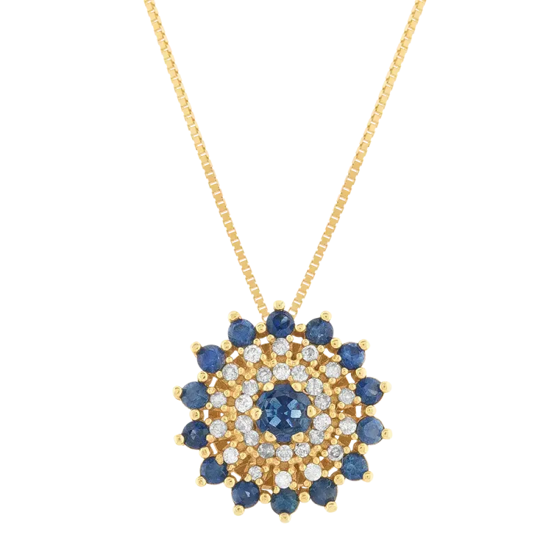Gargantilha Chuveiro Com Safiras e Diamantes Ouro 18k 750