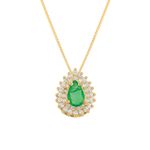 Gargantilha de ouro 18k 750 com esmeralda e diamantes
