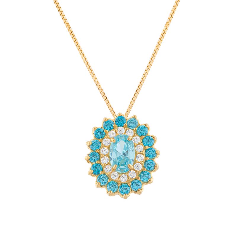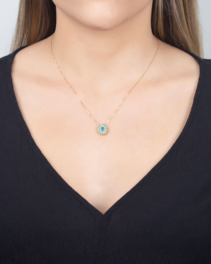Gargantilha de ouro 18k 750 com zircônias azul-claras e incolor