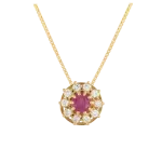Gargantilha de ouro 18k 750 com rubi e diamantes