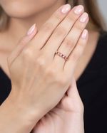 Meia aliança de ouro 18k 750 com zircônias vermelhas e incolor