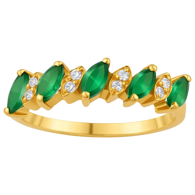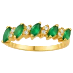 Meia aliança de ouro 18k 750 com esmeraldas e diamantes
