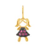 Pingente Ouro 18k 750 Menina com Zircônias Vermelhas