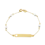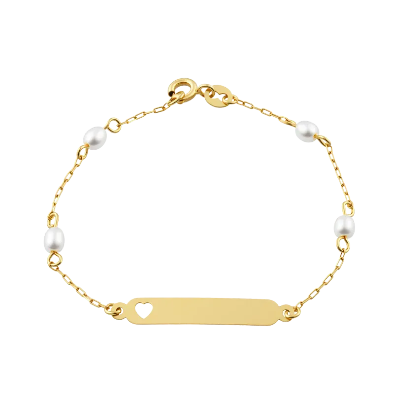 Pulseira Chapa Personalizável Pérolas Coração Ouro 18k 750