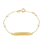 Pulseira Infantil Chapa Personalizável Elos Pérolas Ouro 18k 750