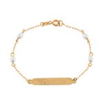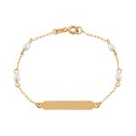 Pulseira Infantil Chapa Personalizável Pérolas Ouro 18k 750