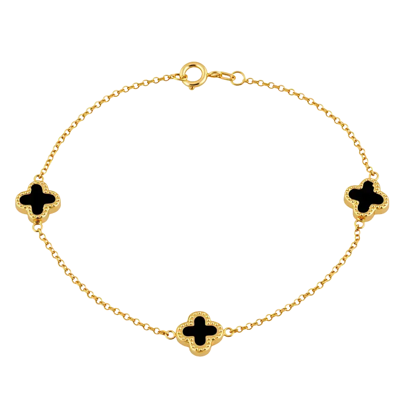 Pulseira Trevos Ônix Negro Ouro 18k 750